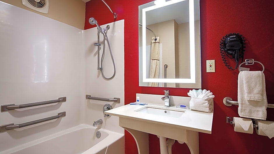 Welcome to our spacious and accessible Queen Room with Two Queen Beds, perfect for families and groups of up to 4 adults and 3 children. Enjoy a comfortable stay with private bathroom, convenient amenities like a microwave and refrigerator, and relax with a flat-screen TV and air conditioning.